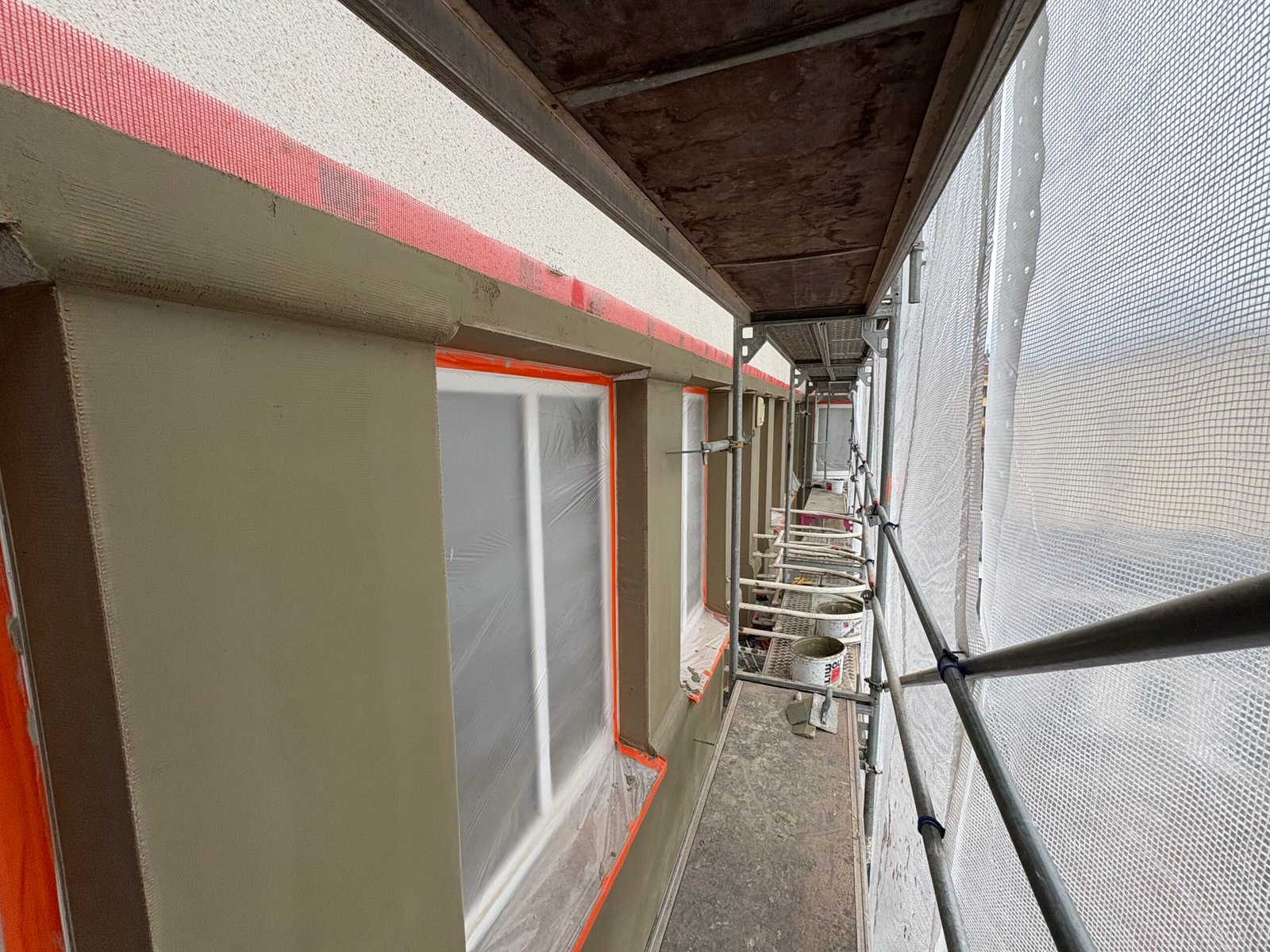 Vos tik pastatomi pastoliai, mūsų komanda pasirūpina langų, durų, palangių bei kitų nešiltinamų konstrukcijų apsauga. Šis žingsnis būtinas, kad būtų išvengta pažeidimų ir apdailos nešvarumų.